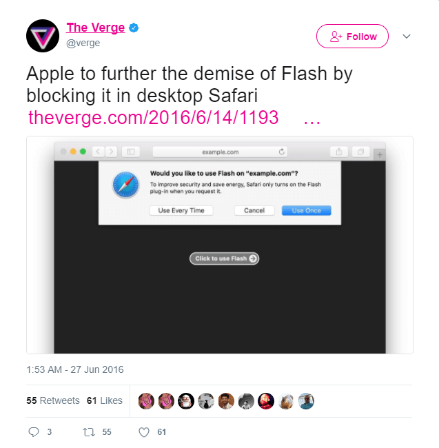 Then, back in 2016, the big browsers all blocked Flash by default.
