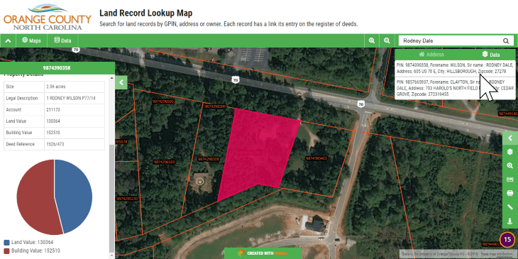 Here give it a try for yourself. Try searching for a parcel owned by “Rodney Dale”: